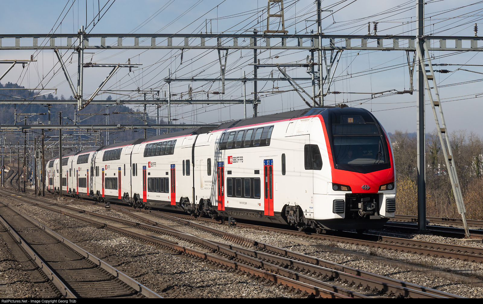 "IRD" (doubledeck train for Interregio services) RABe 512 # 027 of the SBB is running the IR 2269 of the line IR37 from Basel via Liestal-Sissach-Aarau-Lenzburg to Zürich through Killwangen-Spreitenbach.