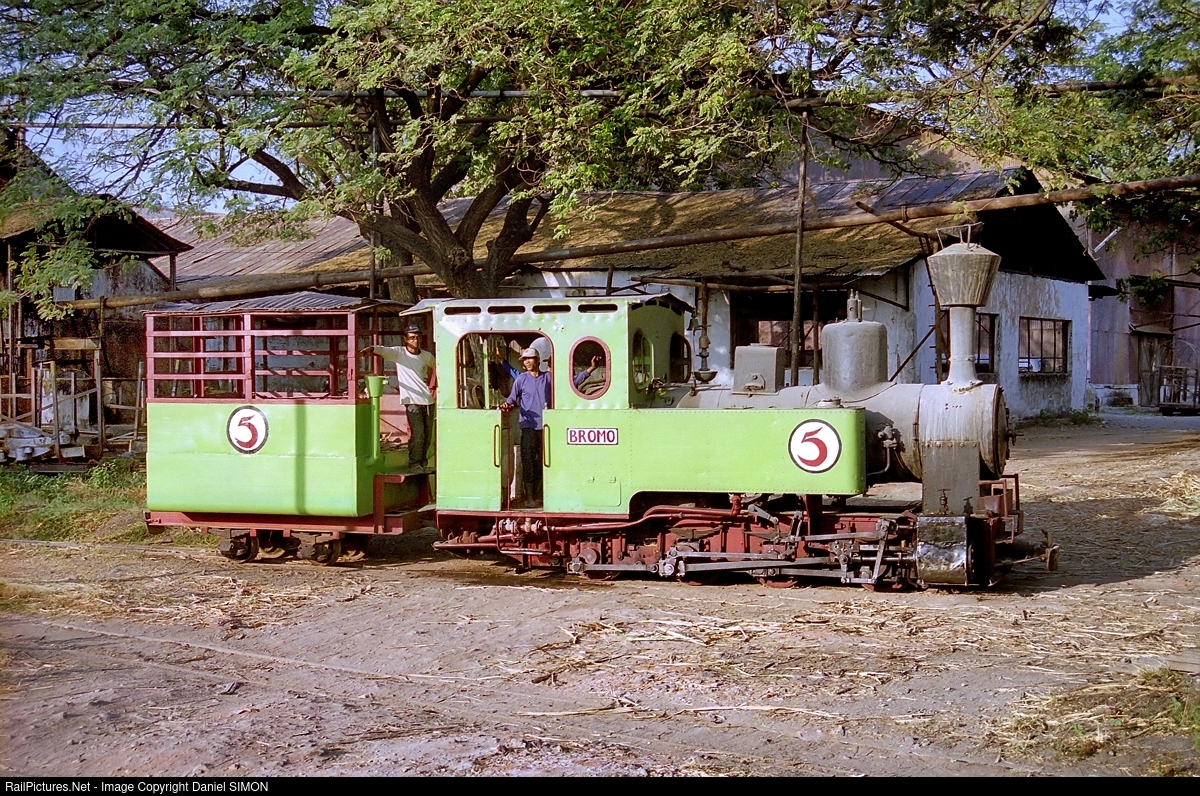 | Olean #5 named BROMO (name of a famous Javanese volcano) is a 0-8-0T built by Orenstein & Koppel in Germany. The locomotive is shunting in the sugar mill yard. |