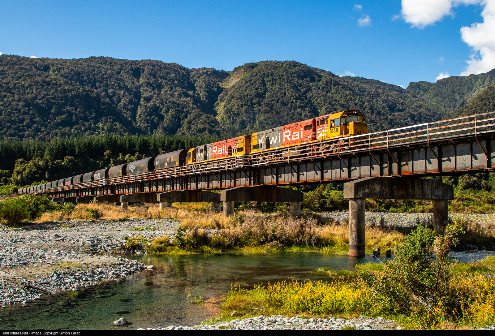 844 crosses over the Taramakau river at Jacksons with a full load of coal ready for export