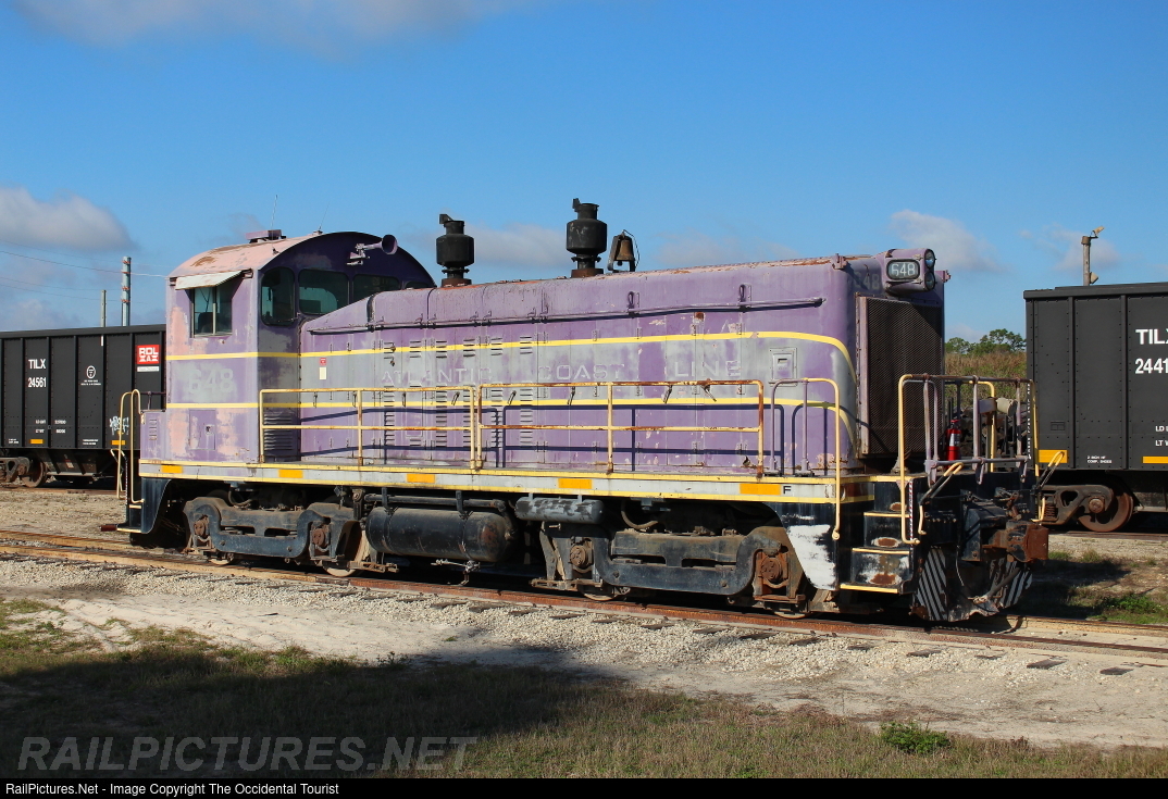 Since the mid-90's, ACL 648 has worked the spur here, once Standard Sand & Silica, then Rinker, now Cemex. Restored by the Florida Railroad Museum, replacing the SCL 130 markings it had for a while, I am unaware of any other reporting marks it has ever had. Was sold by the museum to Standard Sand & Silica and has remained here ever since. Typically, it is out of sight by the sand mine across the street, once in a while they leave it out here along the mainline where CSXT picks up empties and drops off loads.