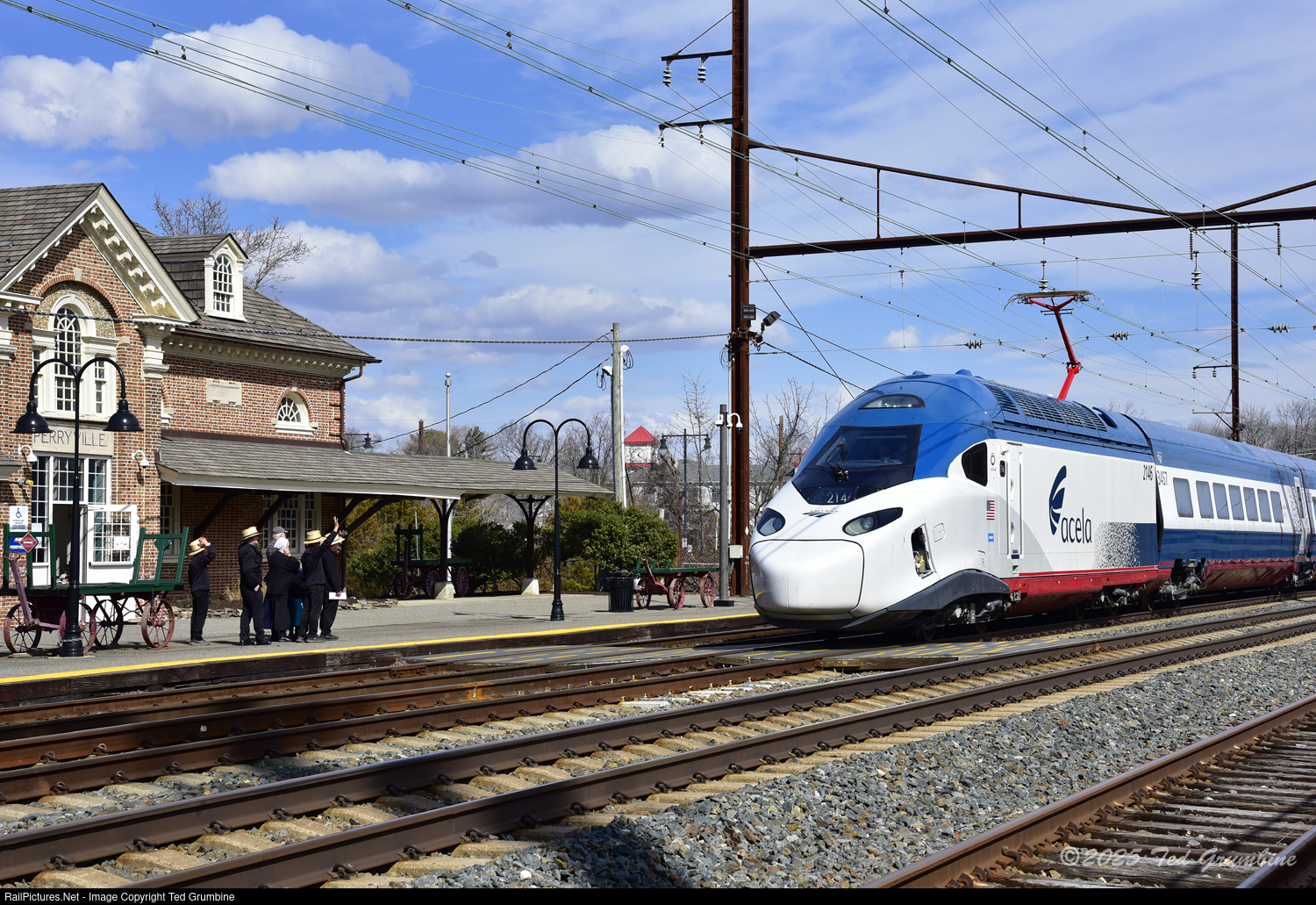 “Amish, Meet Acela II” An Amish family visiting the Perryville Railroad Museum is introduced to Amtrak’s NextGen Acela, in the form of Trainset 8, which was testing on the Northeast Corridor on March 1, 2025. This was the southbound leg of the third (and final) planned roundtrip for the day between Philadelphia, PA and Havre de Grace, MD. Data collection was to be conducted at 135 mph.