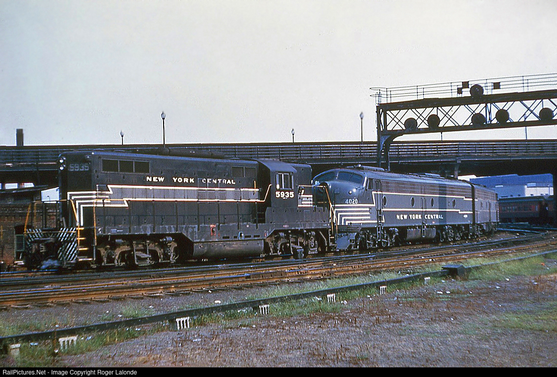 New York Central GP9 5935 as it was backing two E8As and its train the New York, N.Y. to Saint Louis, MO "Southwestern Limited" in the Saint Louis Union Station on May 29, 1960. Photo by R.R. Wallin, from my collection.