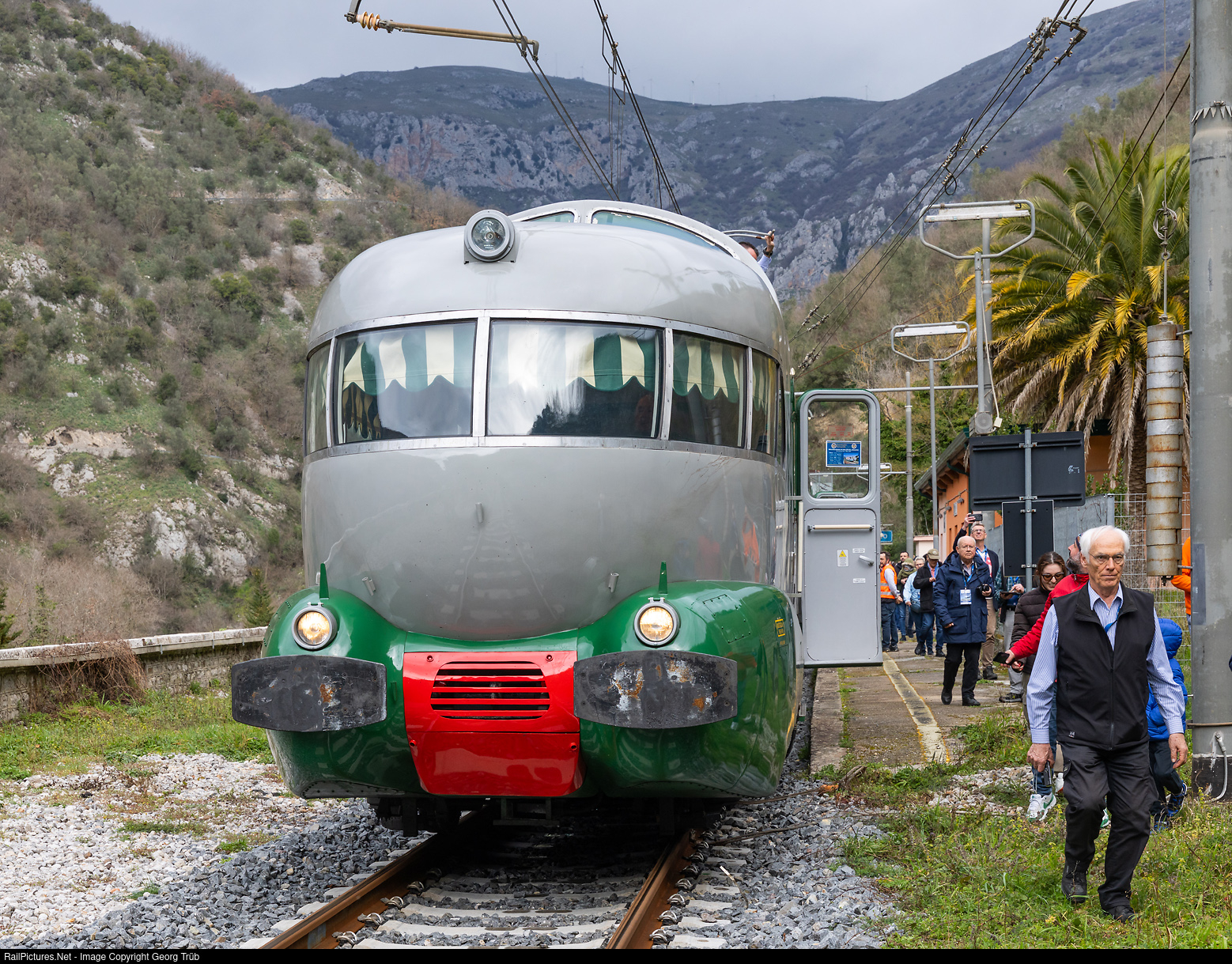 Apparently it had become known that the legendary ETR 252 “Arlecchino” high-speed railcar of the Fondazione FS Italiane would be making a photo stop at Balvano station in the province of Potenza that day. In any case, numerous people from the village of only around 1700 people up in the mountains gathered at the station. The stop lasted only 5 minutes, then peace returned to the valley of the Platano river. The train journey this day was from Bari via Taranto-Metaponto-Potenza-Battipaglia-Salerno-Napoli-Frosinone to Roma Termini. In Balvano, there are 3 trains a day stopping only, two in the morning to Potenza, one in the afternoon to Salerno. Balvano was the site of one of the greatest tragedies on the railroad. In March 1944, during the Second World War, over 500 people were killed when the steam train 8017 with 47 freight cars and two steam locomotives came to a protracted halt in the Armi Tunnel about 2 kilometers uphill from the station and people died of carbon monoxide poisoning. The Balvano train disaster was the deadliest railway accident in Italian history and one of the worst railway disasters ever.