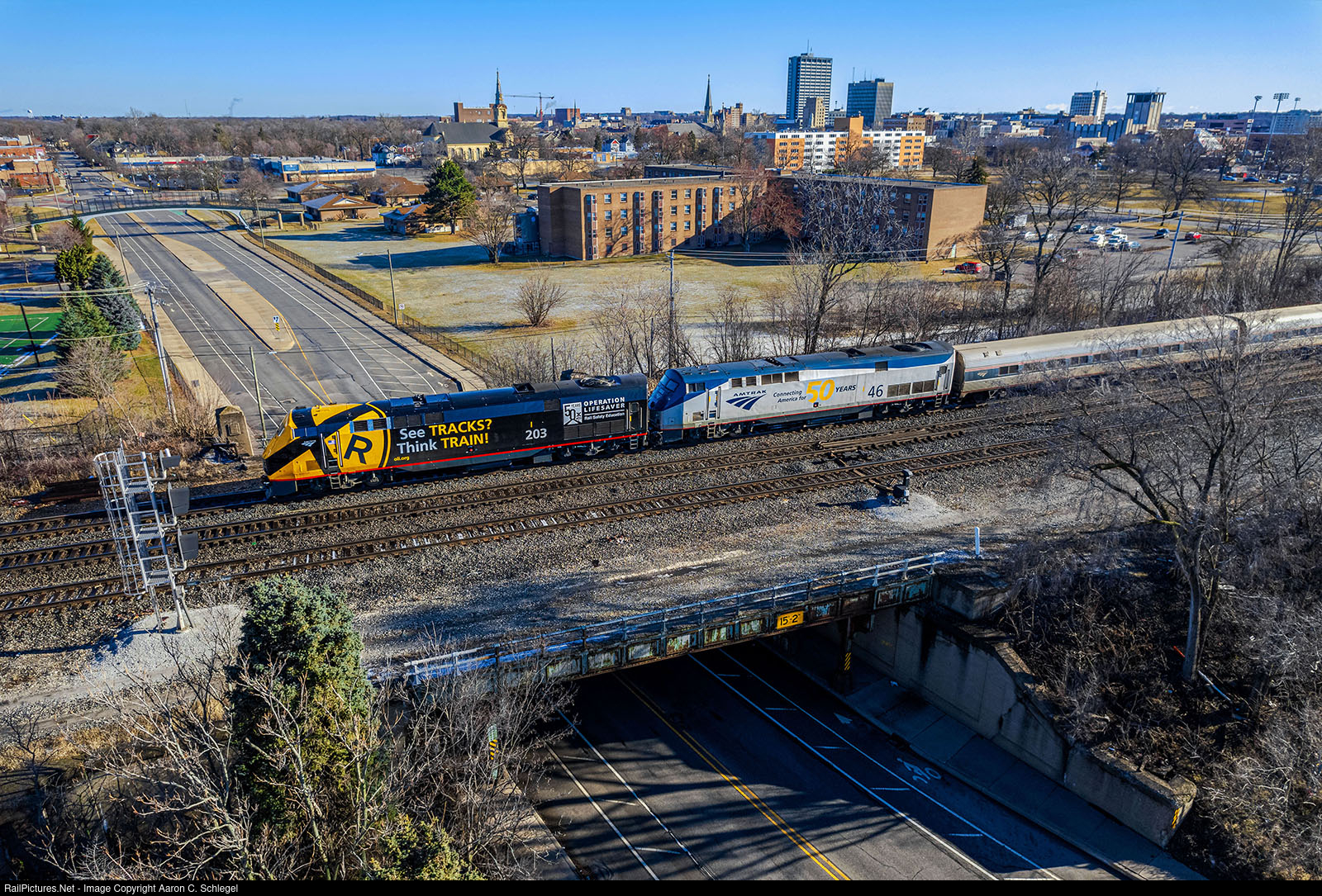 Amtrak Train #40, The Floridian, passes through CP 437 in South Bend, Indiana during the Early morning hours. Today's consist features the Operation Life Saver and the 50th Anniversary Heritage Units. As the train crosses Chapin St. it passes by the Signal for the NS Industry Lead that serves several businesses on the South Side of town.