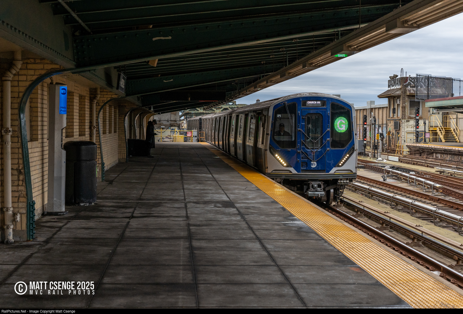 New York City Transit Authority (NYCTA) R211T car no. 4059 is the lead motor on a Church Avenue-bound G train seen arriving at 4th Avenue / 9th Street Station on the IND Culver Line.