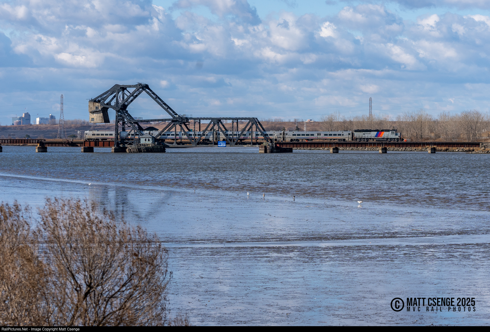 NJ Transit GP40PH-2B no. 4203 is seen leading Pascack Valley Line train 2104 across the Hackensack River on HX Draw. Line the majority of the other GP40s on the roater, the locomotive sports the agency's "disco stripe" logo - though a bit brighter having received a fresh paint job within the last couple years. |