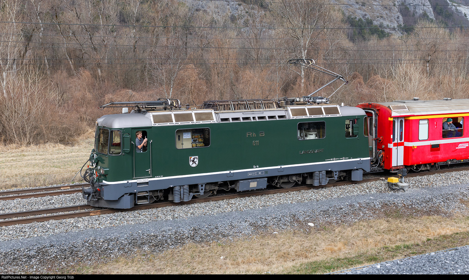 Under the motto “Green and Chrome”, the Eurovapor association, together with the Mikado 1244 association and the RhB/Green and Chrome foundation, organized a day trip from Brugg to Chur with a round trip through Graubünden. From Brugg via Zurich-Winterthur-Weinfelden-Rorschach-Sargans to Chur, the Ae 6/6 # 11407 “Aargau” of the Mikado 1244 association (on loan from SBB Historic) pulled the sold-out train with 4 carriages. In the canton of Graubünden, the Ge 4/4 II # 611 “Landquart” in green hauled a 9-car train with standard coaches type II in first and second class as well as the baggage car D # 4205 in green, which served as a bar car, from (Landquart-) Chur via Reichenau-Thusis-Filisur-Davos-Klosters to Landquart, from where the return journey was made on the same route with the train of the Mikado 1244 association. Between Zizers Altlöser crossing station and Chur, the two trains ran in parallel for around 10 minutes over a distance of around 10 kilometers. Here you can see RhB train 92511 on meter gauge running at around 60 km/h from the parallel running special train 31000 on standard gauge between Untervaz and Haldenstein.