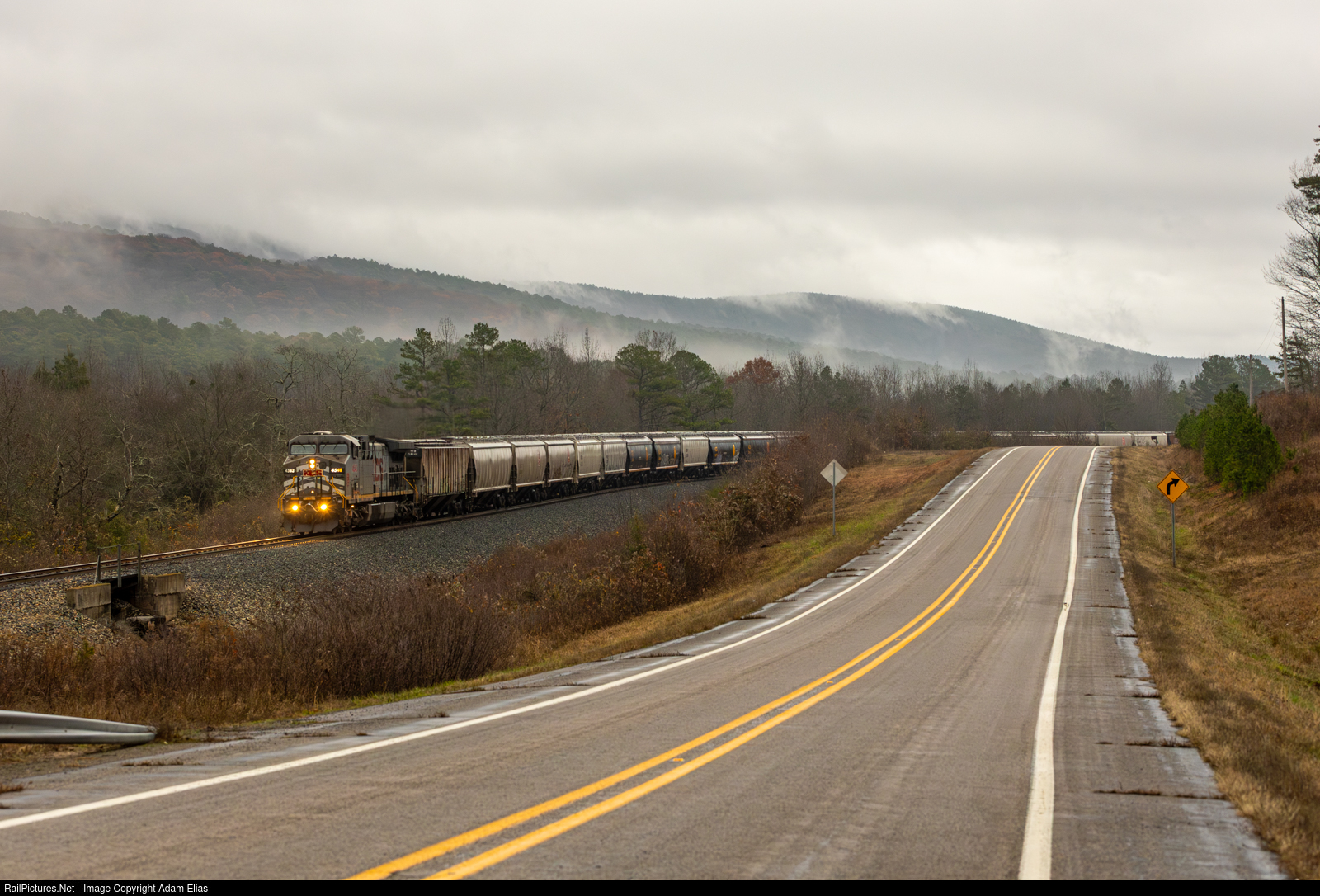A solo KCSM AC44 leading a Northbound grain over Rich Mountain in the early morning.
