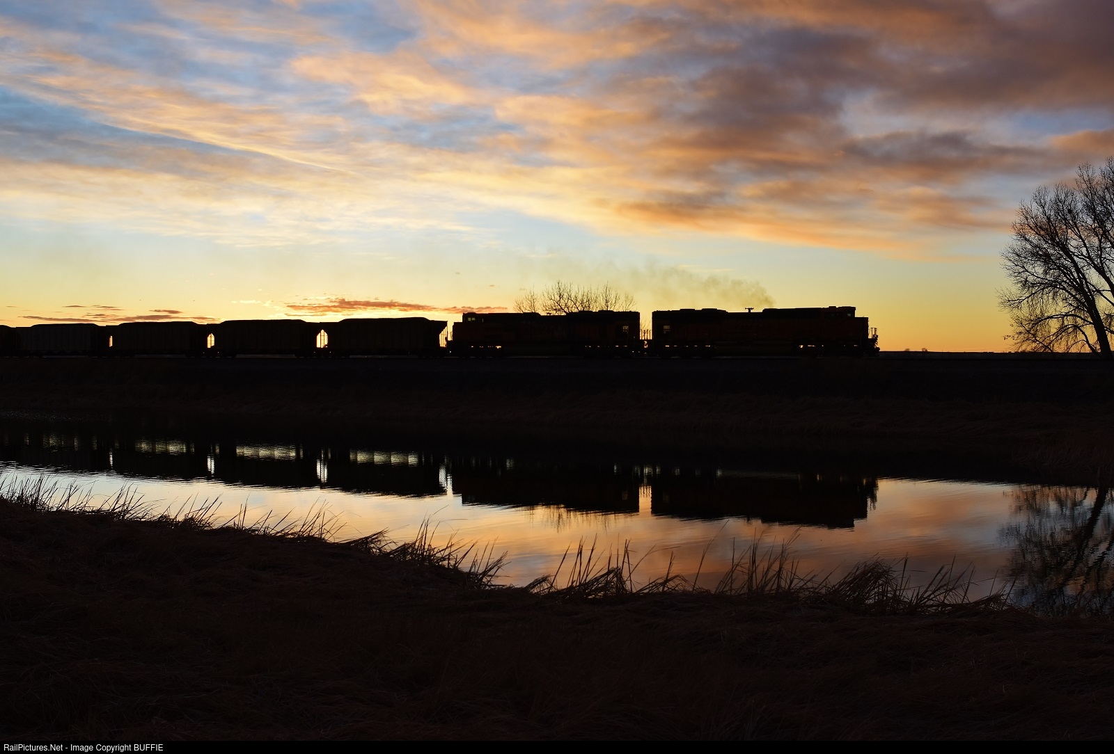 BNSF 8431 (SD70ACe) leads a loaded coal through Barr Lake at sunrise on the Brush Sub.