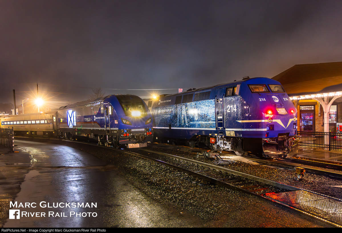 Electric Charger Meets Employee Appreciation. On the night of Thursday, March 20, 2025, MTA Metro-North Railroad/Siemens SC42-DM MNCW 301 successfully tested on the Danbury Branch to Danbury, Connecticut in the rain. Seen in front of the former Danbury Union Station at The Danbury Railway Museum, the "Employee Appreciation/40th Anniversary" unit, MNCW 214, was parked on Track 6S after coming up on Train 1848 earlier in the evening, making for a nice combo shot.