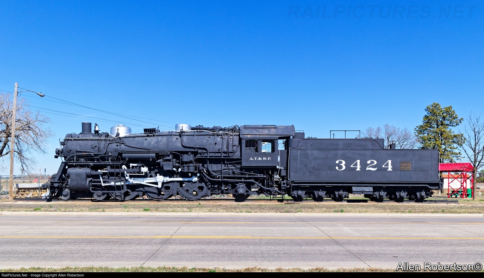 Information taken from a plaque on the tender. AT&SF 3424 was purchased September 1921 from Baldwin Locomotive Works at Eddystone PA. at a cost of $61,927.08. Used in passenger service on Chicago terminal, Illinois, Missouri divisions. Converted from coal to oil fueling September 1941. Retired from service July 1953. Total mileage 2,071,610. Donated to the City of Kinsley KS on June 7, 1956.