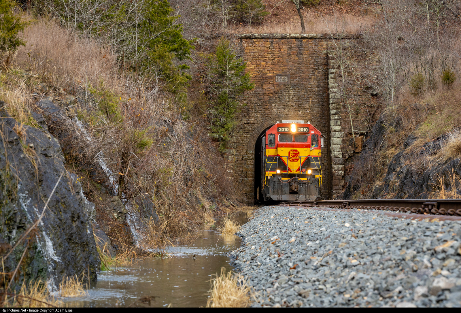 | The Ft Smith Dodger coming out of Jenson Tunnel on their way back South to Heavener. The Jenson Tunnel was constructed in 1885-1886 by the Fort Smith & Southern Railway which was owned by the Frisco. Only rail tunnel in all of Oklahoma! |
