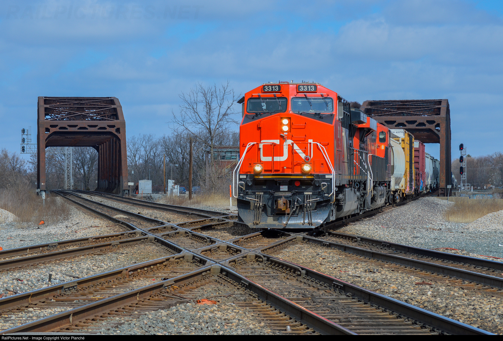 CN 3313 is leading the daily L503 through the Blue Island Diamond.