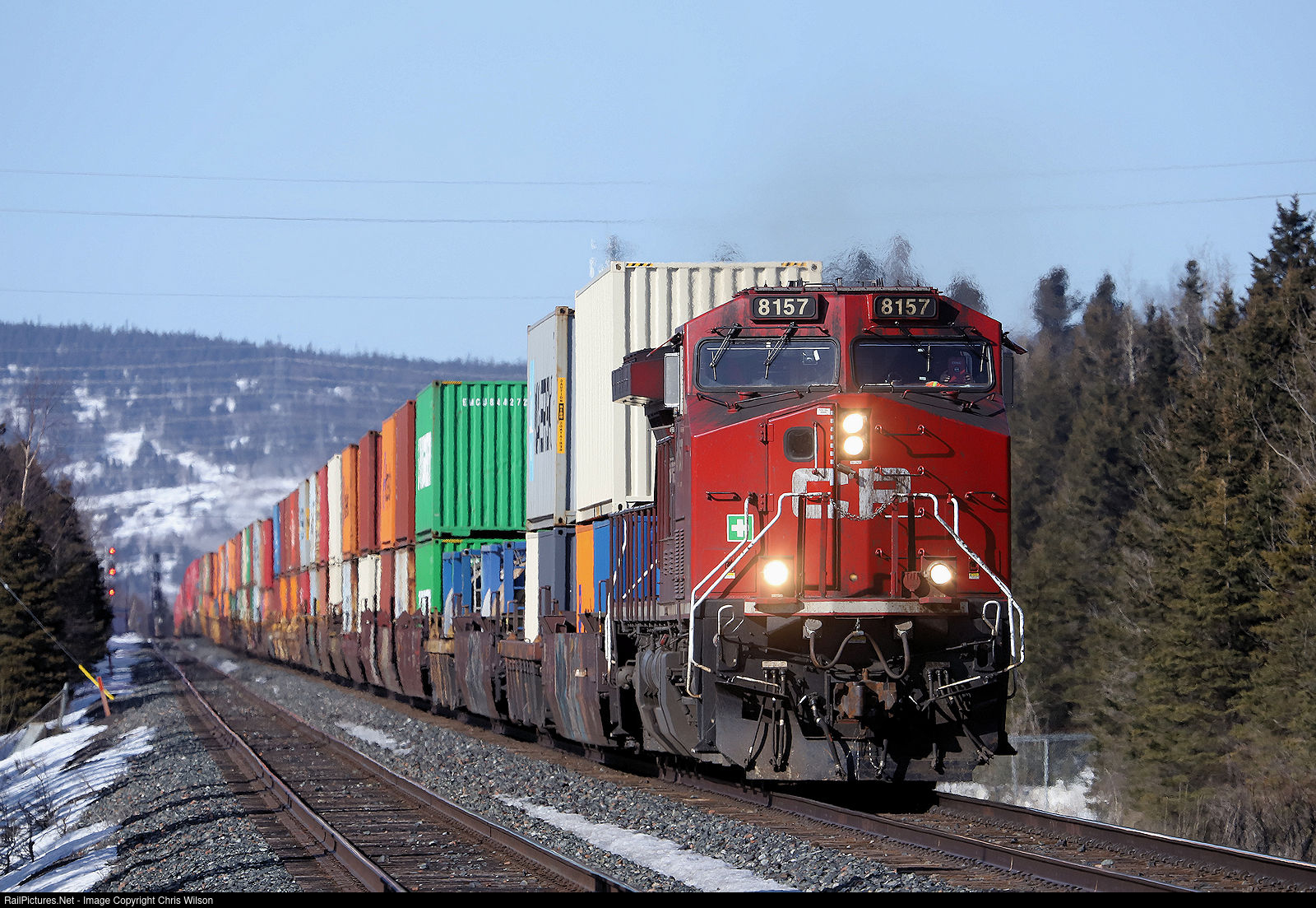 CP AC4400CWM 8157 hauls a stack train down the main track at Marathon