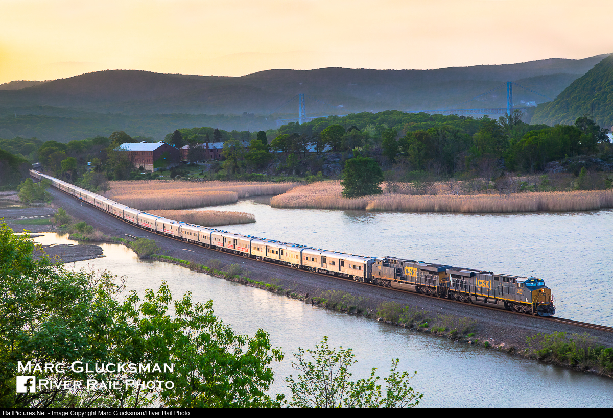 Happy Barnum & Bailey Circus Day! On March 28, 1881, P.T. Barnum and James A. Bailey merged their circuses to form "The Greatest Show on Earth". For decades, when the circus came to town in many places, it also meant that Circus Train came to town. On May 11, 2015, we catch a view of it crossing Iona Island, New York on the CSX River Line, this location selected because of the large open area to include the lengthy consist in the photo. CSXT 968 (ES44AC) and 739 (ES44AC-H) lead CSX P929 at sunset as it heads towards New Jersey after the train was held a bit up the line for a number of other trains to pass. The Circus Trains were composed of dozens of legacy railroad passenger cars of various configurations, as well as freight cars to carry its motor vehicles. In 2017, the final Circus Trains operated after the final Barnum & Bailey circuses, and the cars have since been dispersed across the country.