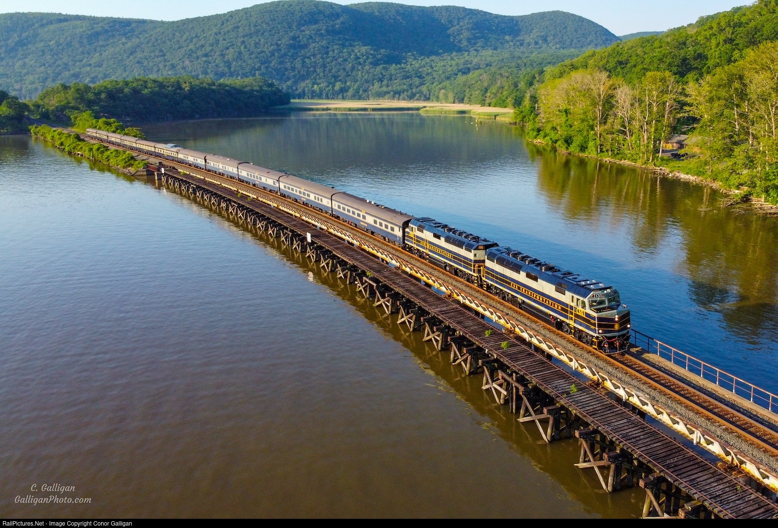 CSX Office Car Special P001-06 flies across the trestle at Iona Island sporting at the time, brand new B&O painted CSX F40s to match their OCS fleet.