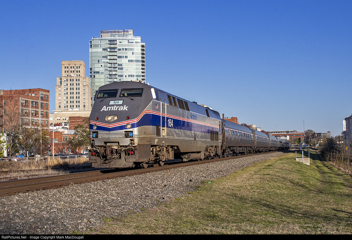 RailPictures.Net Photo: AMTK 164 Amtrak GE P42DC at Durham, North Carolina by Mark MacDougall