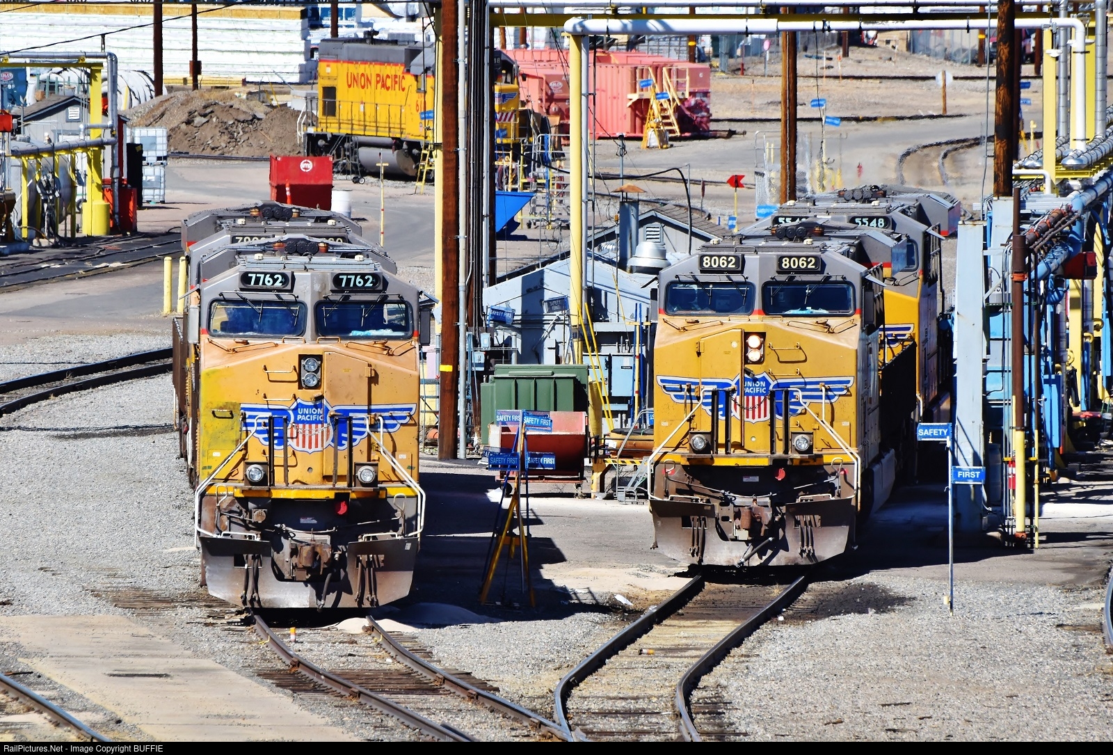 UP 7762 (AC45CCTE) joins other heavy units at the servicing island in the North Yard in Denver, Colorado.