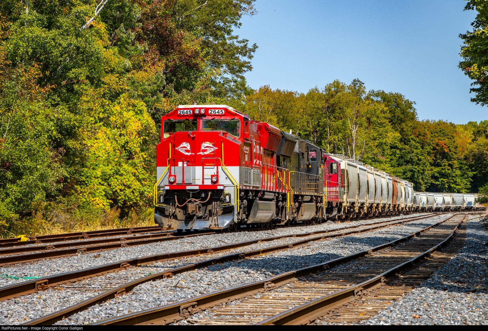 | With the colors of fall finally starting to show up, RJ Corman RJC-1 sits tied down outside of Cresson, PA. SD70M 2645 sits on the head of this train, and is relatively new to the area as Corman previously primarily used SD40s. Trailing is High Hood GP9 9002 which showed up about the same time as the SD70Ms. |