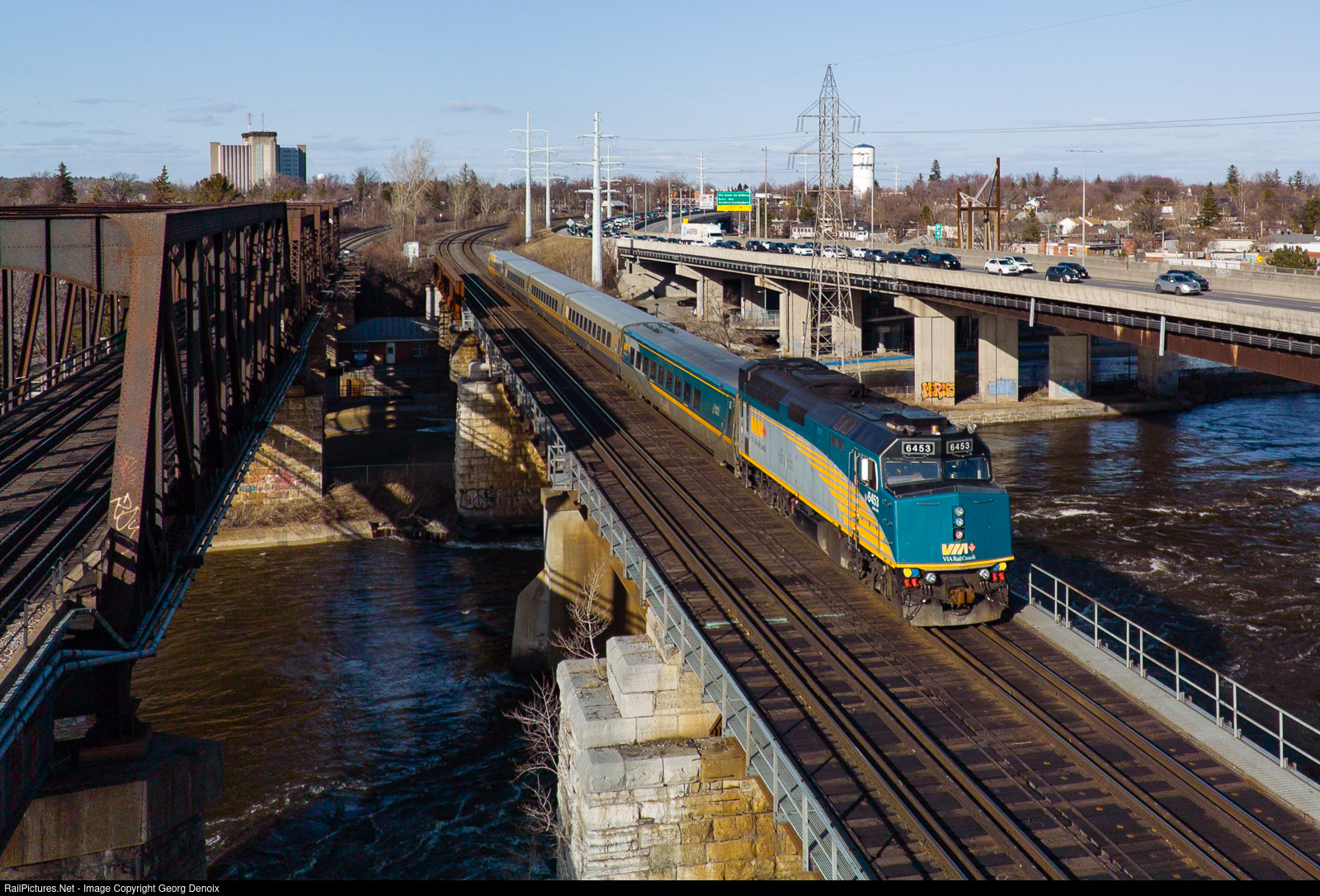 | LRC sets can still (or better - again) be found on the Quebec-Montreal-Ottawa corridor, and on this first day of April, F40PH 6453 was in charge of VIA 37 with five LRC cars. |