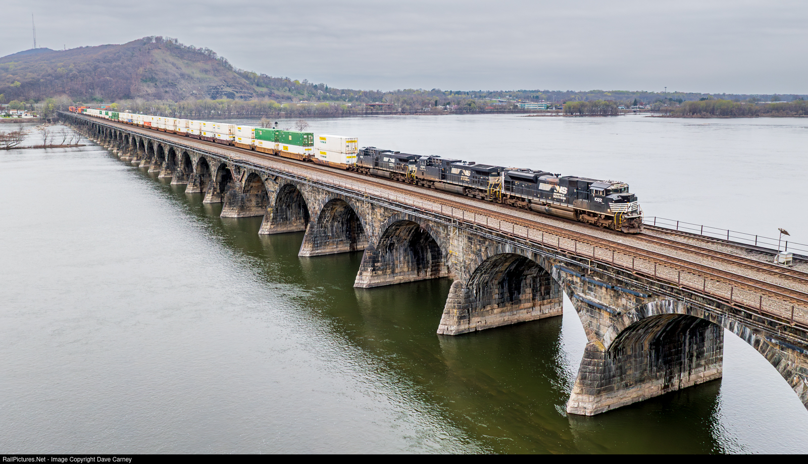 SD70ACe 1022 leads an intermodal across the Rockville Bridge.