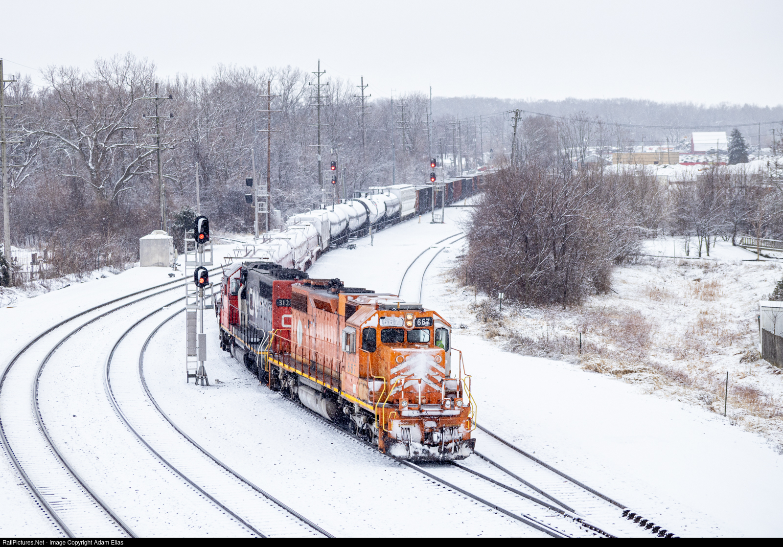 On my birthday CN decided to run L521 from Kirk Yard to Joliet with EJE 667 leading on home rails. Here they are arriving the former EJE East Joliet Yard.