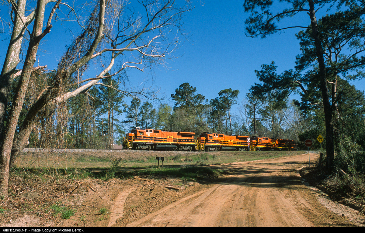 | Georgia Central train L782 works its way west toward Macon, GA from Savannah passing through the small community of Ohoopee, GA. The railroad was known for its fleet of ex-Southern Railway high-nosed U23Bs which were retired in 2014. After a few years of various EMD units on the roster the railroad again became a GE-dominated roster with the acquisition of former NS B32-8s. The railroad now has an entire fleet of this model exclusively, numbering 20. It's the largest fleet of this locomotive type in the world and pretty much the only place to see these units in daily mainline service. |