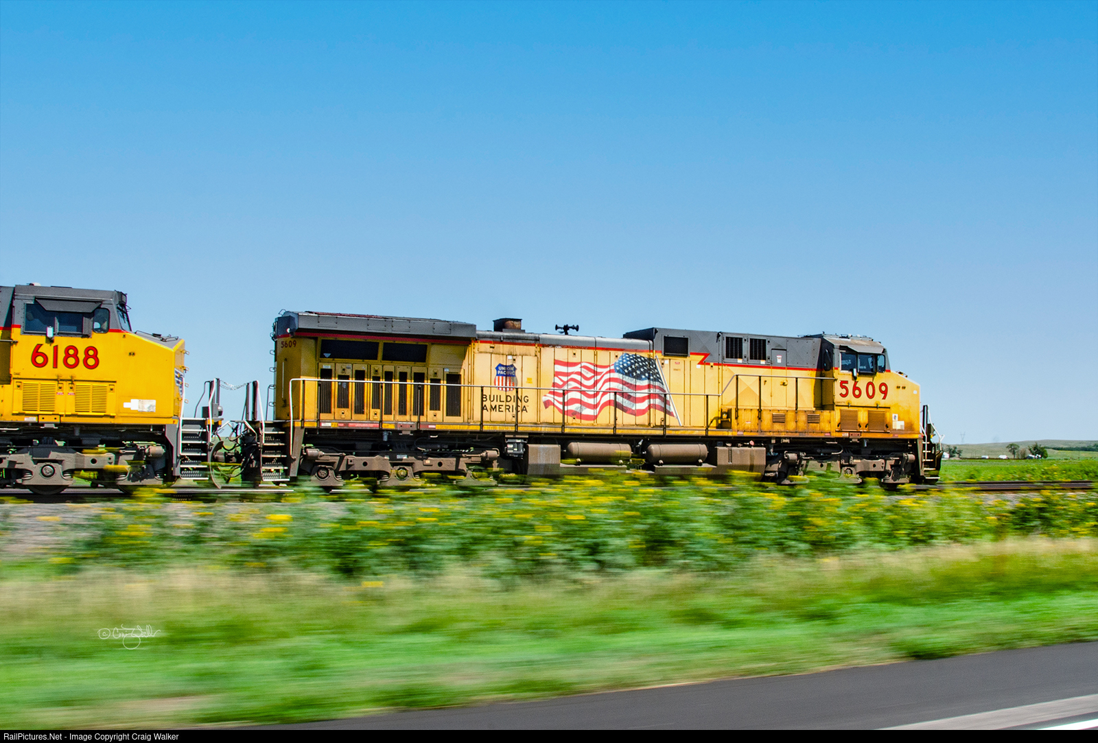 On August 19, 2017, loaded Union Pacific coal train CWTCL9-18 hustles its way east as passes through Keith on its way from West Thunder Mine in Wyoming to Coleto Creek, Texas. UP AC4400CW 5609 is leading this train, which consists of 134 loaded gondolas, weighing 19,162 tons and stretching out to 7532 feet. Behind UP 5609 is UP AC4400CW 6188 (ex-SP 129), with UP AC4400CW 6279 (ex-SP 248) and AC4400CW 6822 on the rear. (Keith, Nebraska - August 19, 2017)