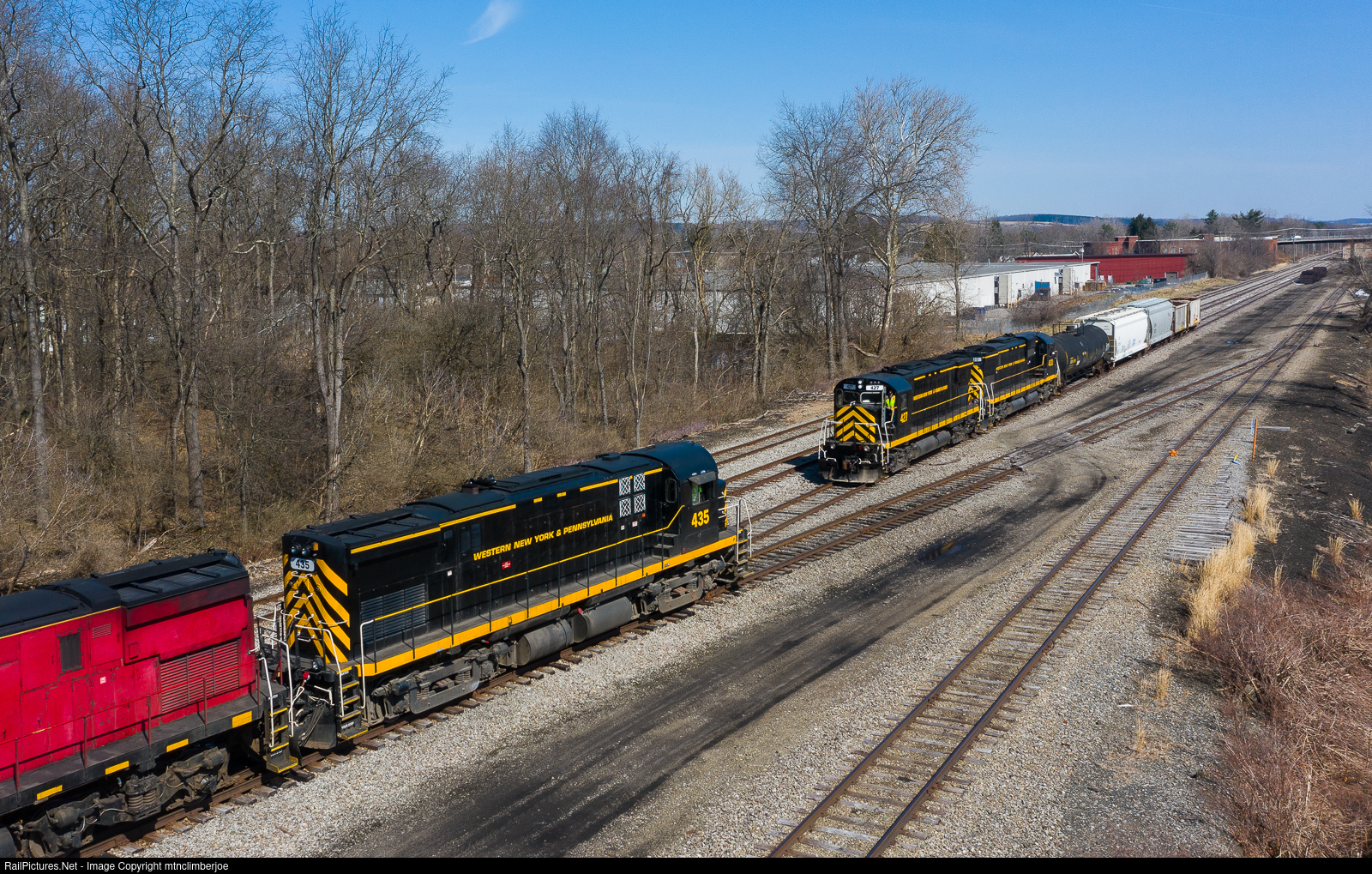 The WNYP's Falconer Turn consisted of two jobs that would meet in Falconer, New York where the crews would interchange their trains before and then head back to their home terminals. The OL-2 crew was based out of Olean and will still run to serve customers in Falconer, and the ME-1 crew based out of Meadville, that will no longer run here as WNYP discontinued service over the line west of Jamestown. The crews are making this swap for one of the last times on a March afternoon, with the ME-1's 427 and 430 tied on to the cars bound for Meadville while the OL-2's 435 and 432 back on to the cars that ME-1 brought in.