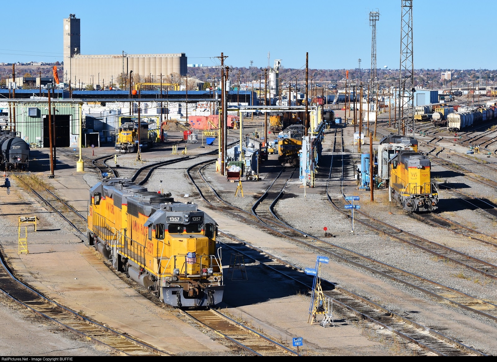 UP 1357 (ex DRGW GP40-2) waits for its turn to shuffle cars in the North Yard in Denver, Colorado.