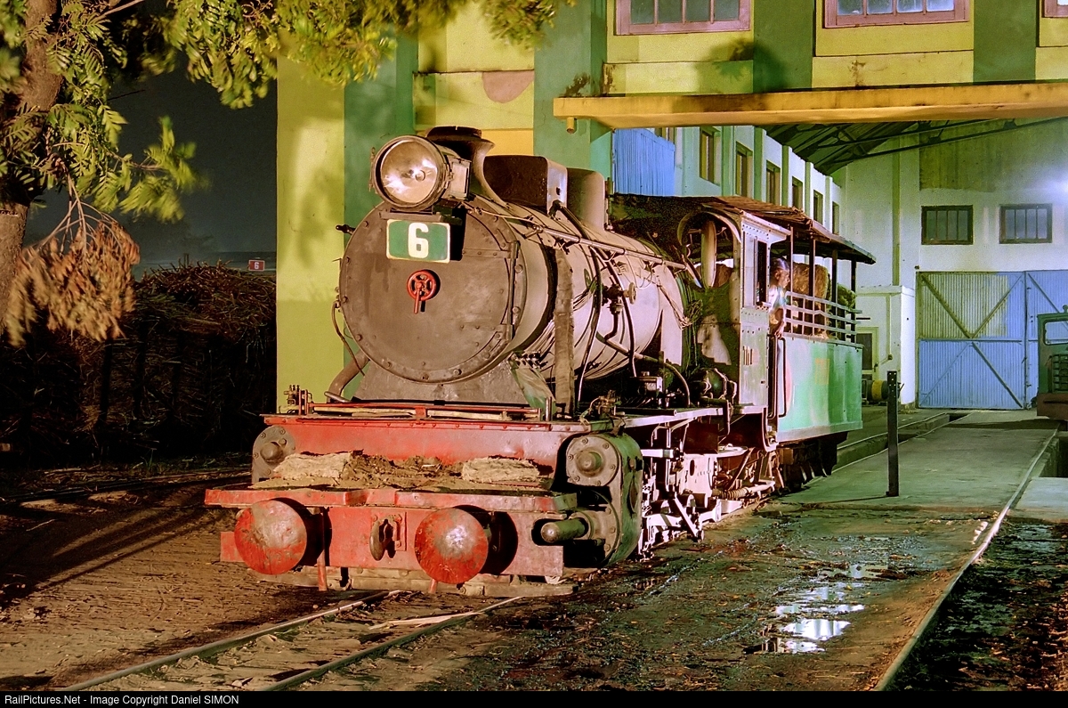 | Tasik Madu #6 nicknamed "the beast" is resting outside the shed waiting for a next assignment. This locomotive has been built by Orenstein & Koppel in Germany in 1929 and uses the Luttermoller system of articulation to allow it to negotiate tight curves. Whilst normally referred to as an 0-10-0 in fact the leading and end driving wheels are not connected to the centre drivers by means of coupling rods but instead a geared system is used to transmit the power. #6 was in 2006 the largest steam locomotive used in all the sugar mills on the Javanese island.