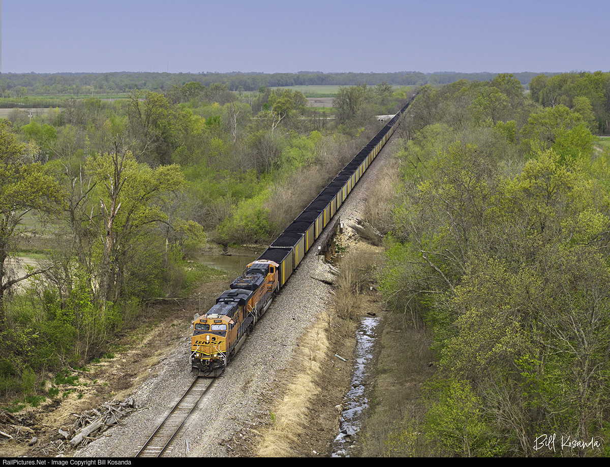 BNSF coal train headed toward Ameren's Portage de Sioux power plant with UCEX coal hoppers.
