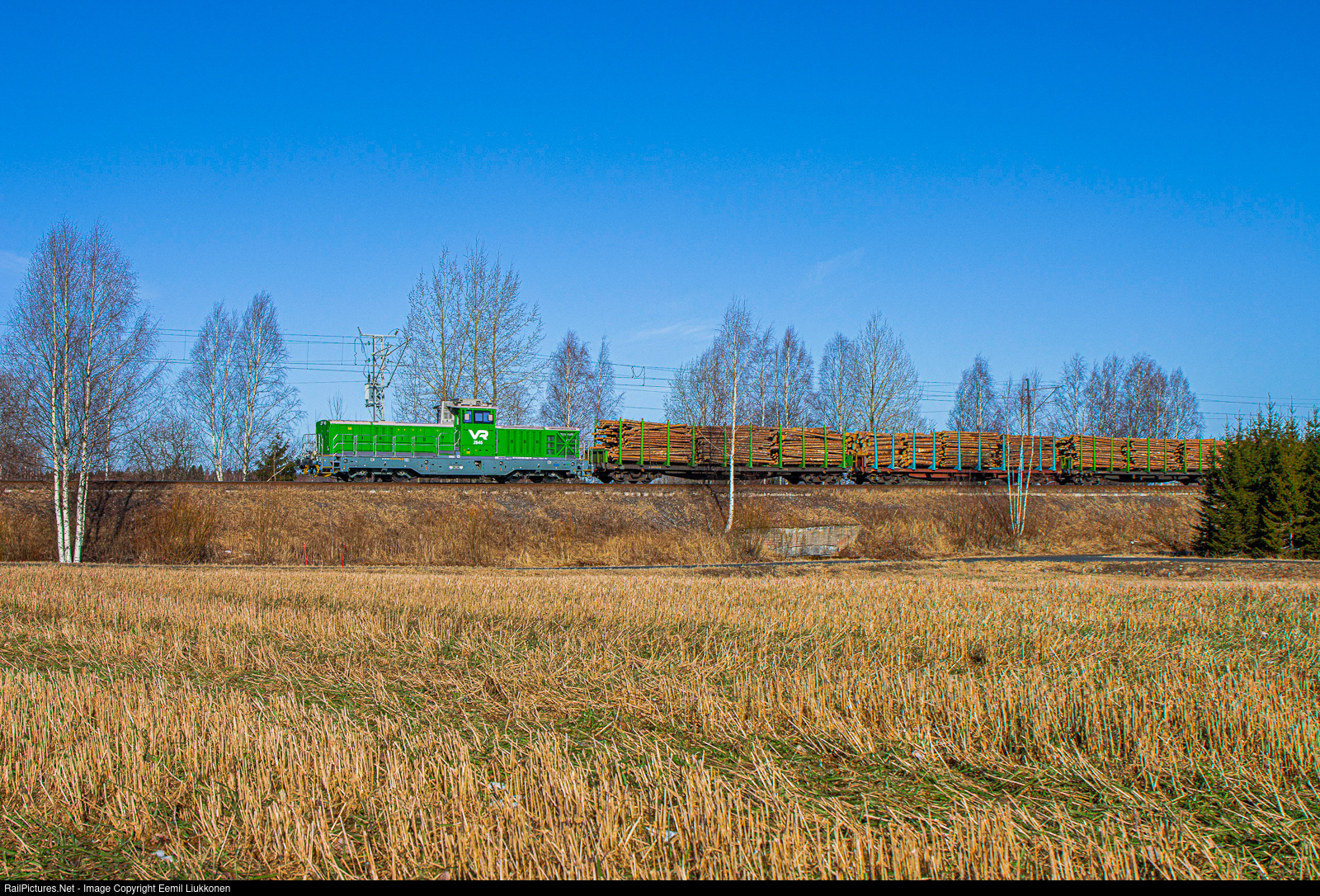 | A bright spring day shines over the small town Siilinjärvi, where the introduction of class Dr19 diesel locomotive has been evident recently. Here the number 2845 is just arriving to Siilinjärvi after fetching a full load of timber from Sänkimäki which are meant to be delivered to Pieksämäki for the upcoming afternoon. |