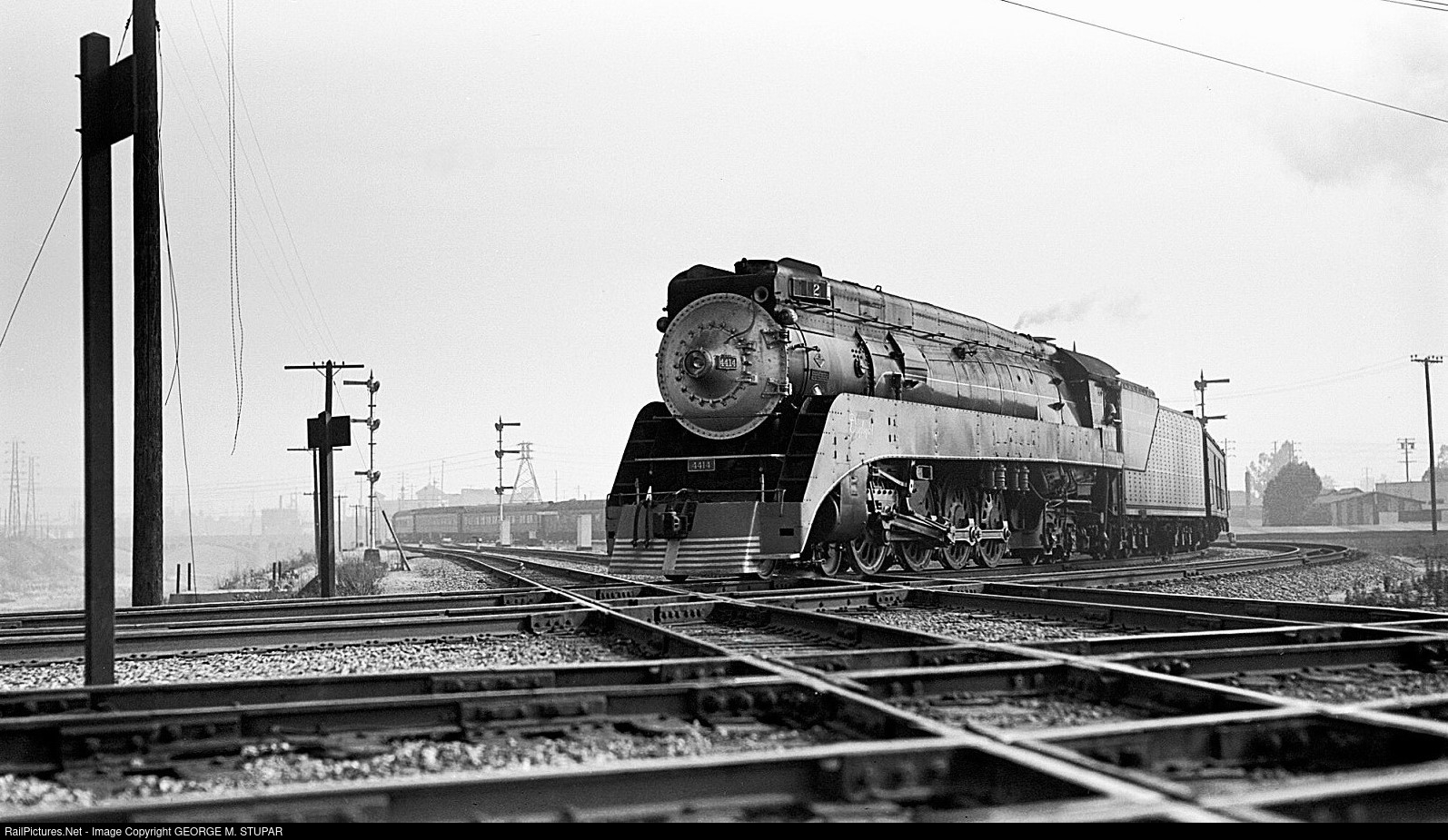 SP 4414 is captured with rods down while traversing the crossovers in Los Angeles. This is Southern Pacific train number two, the Sunset Limited. Otto Conrad Perry photo, from my collection.