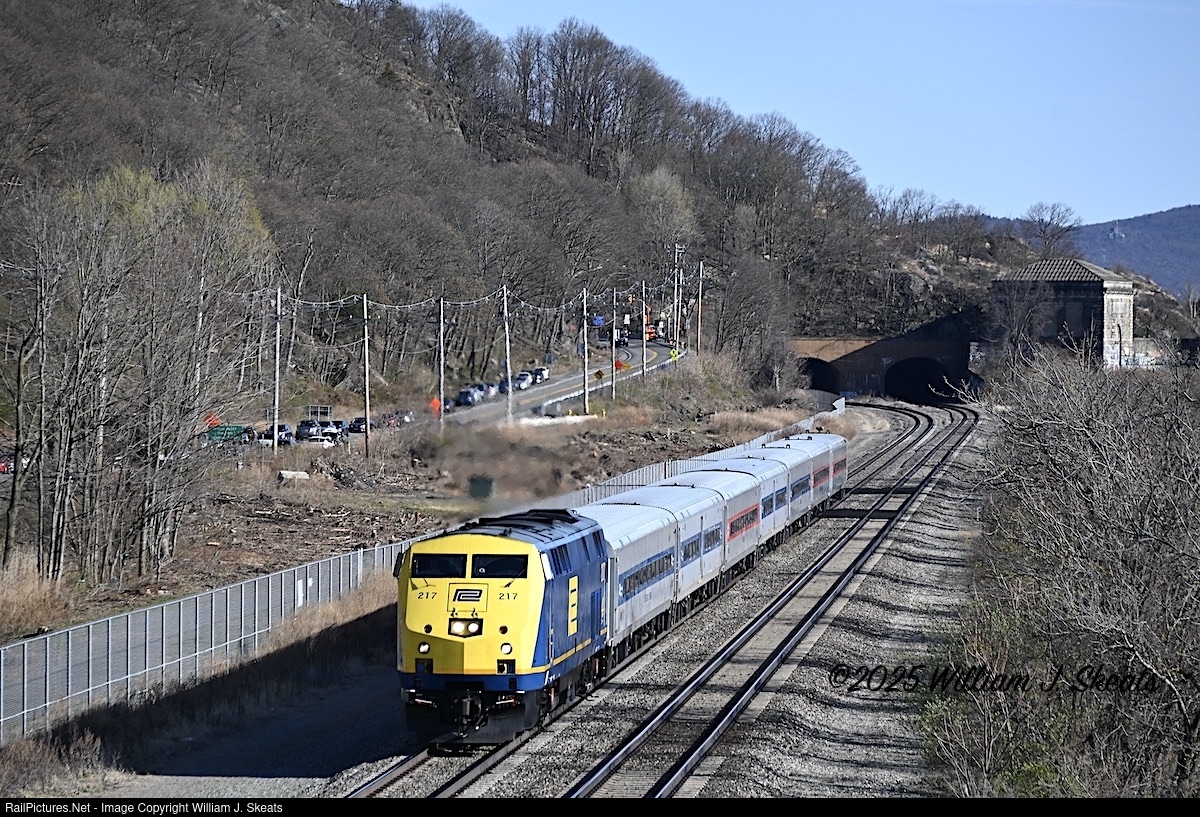 | P32AC-DM 217,Penn Central Heritage, heading for the walkup platforms at Breakneck Ridge. The station is used by hikers enjoying the trails in the area. The Metro North Railroad is upgrading the station and will be closed for the next two years during construction. |