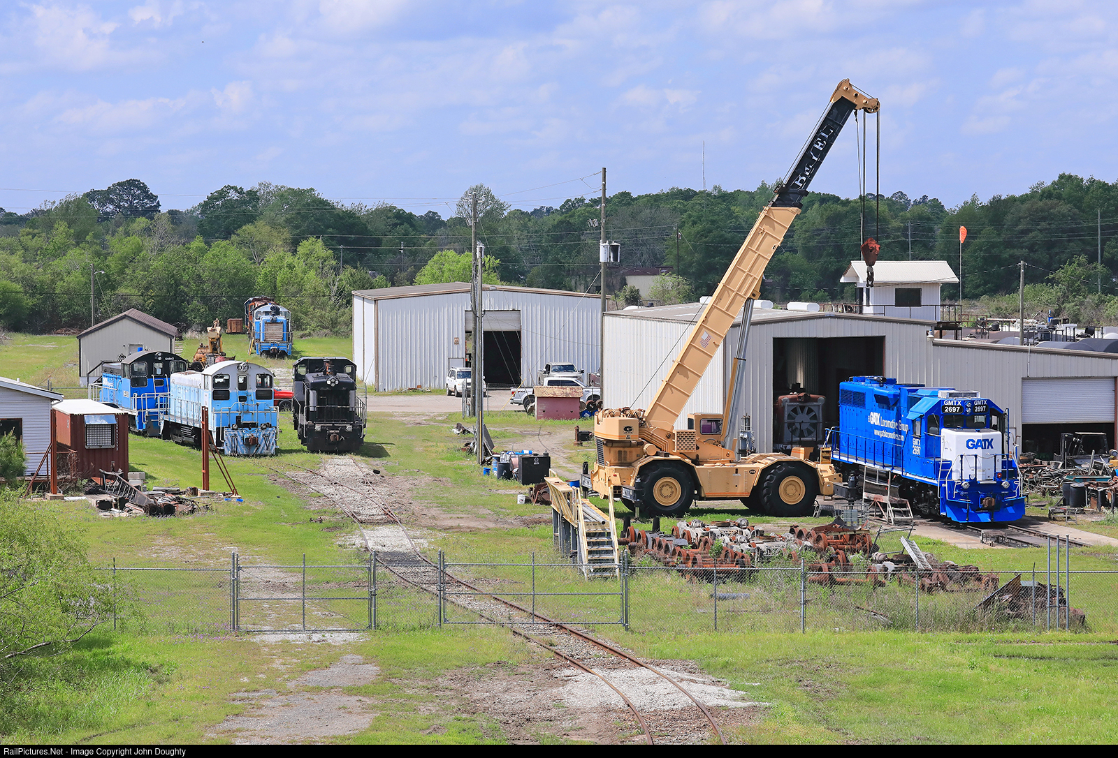 | GMTX 2697 and black and silver PRLX 1212 are two new visitors to the Locomotive Specialist Facility in Waycross, Georgia. Inside the shop, former Illinois Central 1439 is finally going through a complete rebuild after sitting at the LOSX facility for many years. |