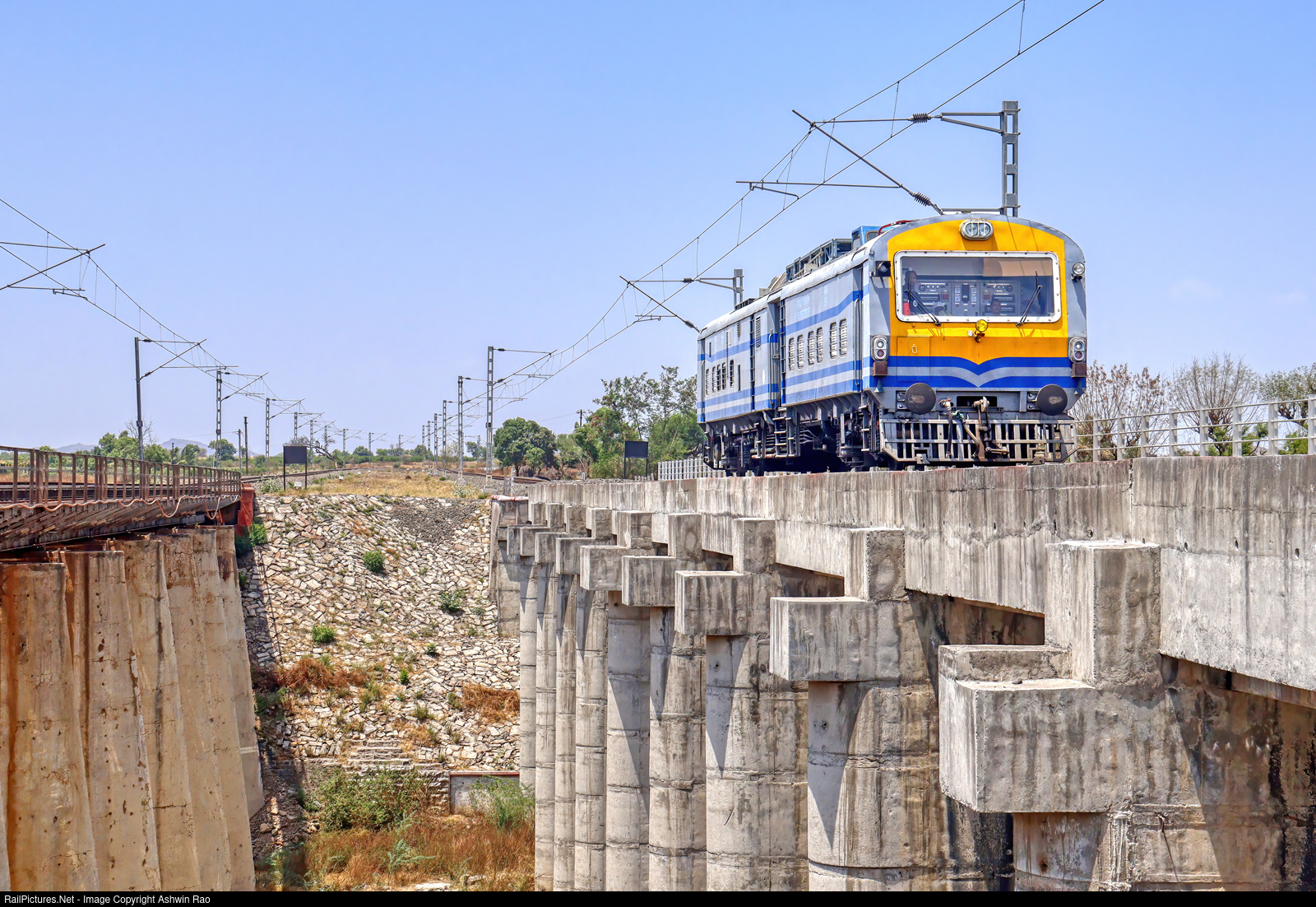 Self propelled OHE inspection van at Khara river bridge near Jejuri.