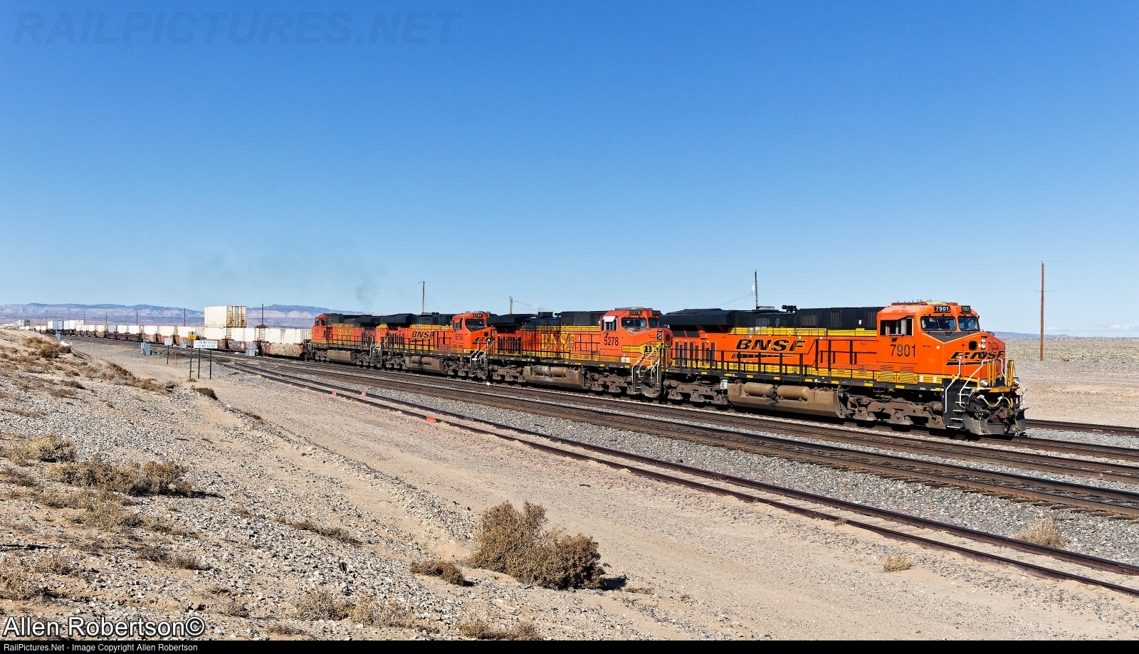 | BNSF 7901, 5278, 6750, & 5176 lead a mix of containers and trailers. |