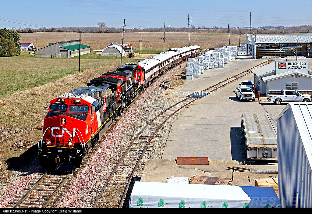 The CN ran their executive train out to Waterloo on March 28th. Along for the ride was a group from the IANR team seeing the sites. The train made awesome time as it traveled from Markham to Waterloo in a little over 8 hours. Here, the train passes through Delaware, still 52 miles from Waterloo. At Waterloo, everyone would get off, and the train would deadhead back to Markham. The last time the executive train made it to Iowa was in late 2017.