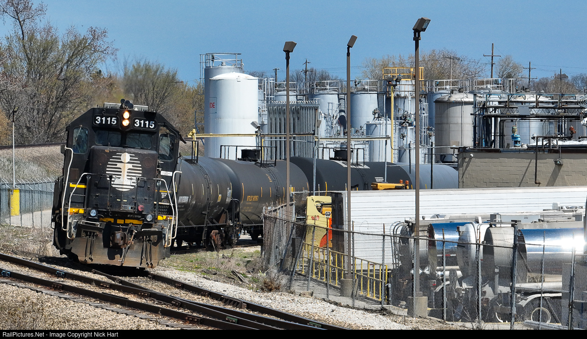 | L501's crew is shoving their delivery into EMCO Chemical Packaging. A really nice leader, in the form of an Illinois Central Deathstar GP40R, is in charge today. |