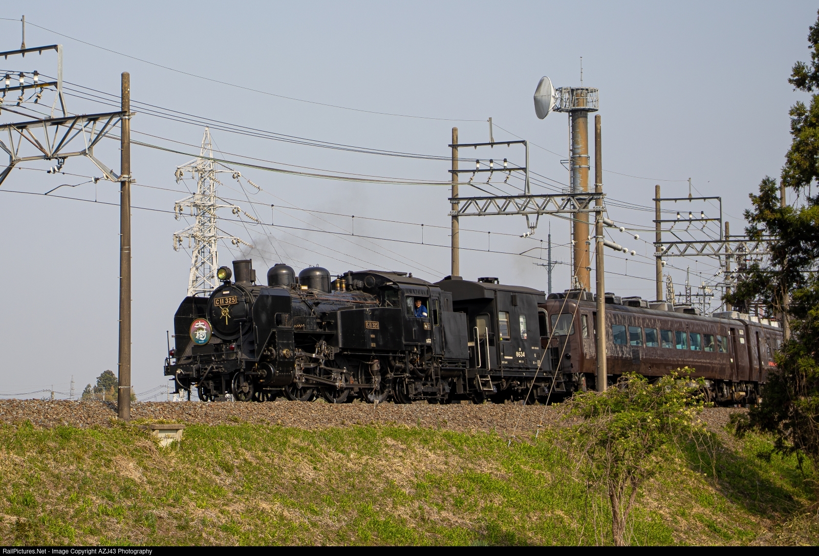 | Tobu's resident steam locomotive C11 325 drifts out of Shimo-Imaichi to start its last journey of the day to Kinugawa-Onsen on the regular SL Taiju run. Tobu operates this service 4 times daily on weekends and a special extended run to Tobu Nikko on weekdays. 2 other similar steam engines are employed on these runs as well as 2 diesels. |