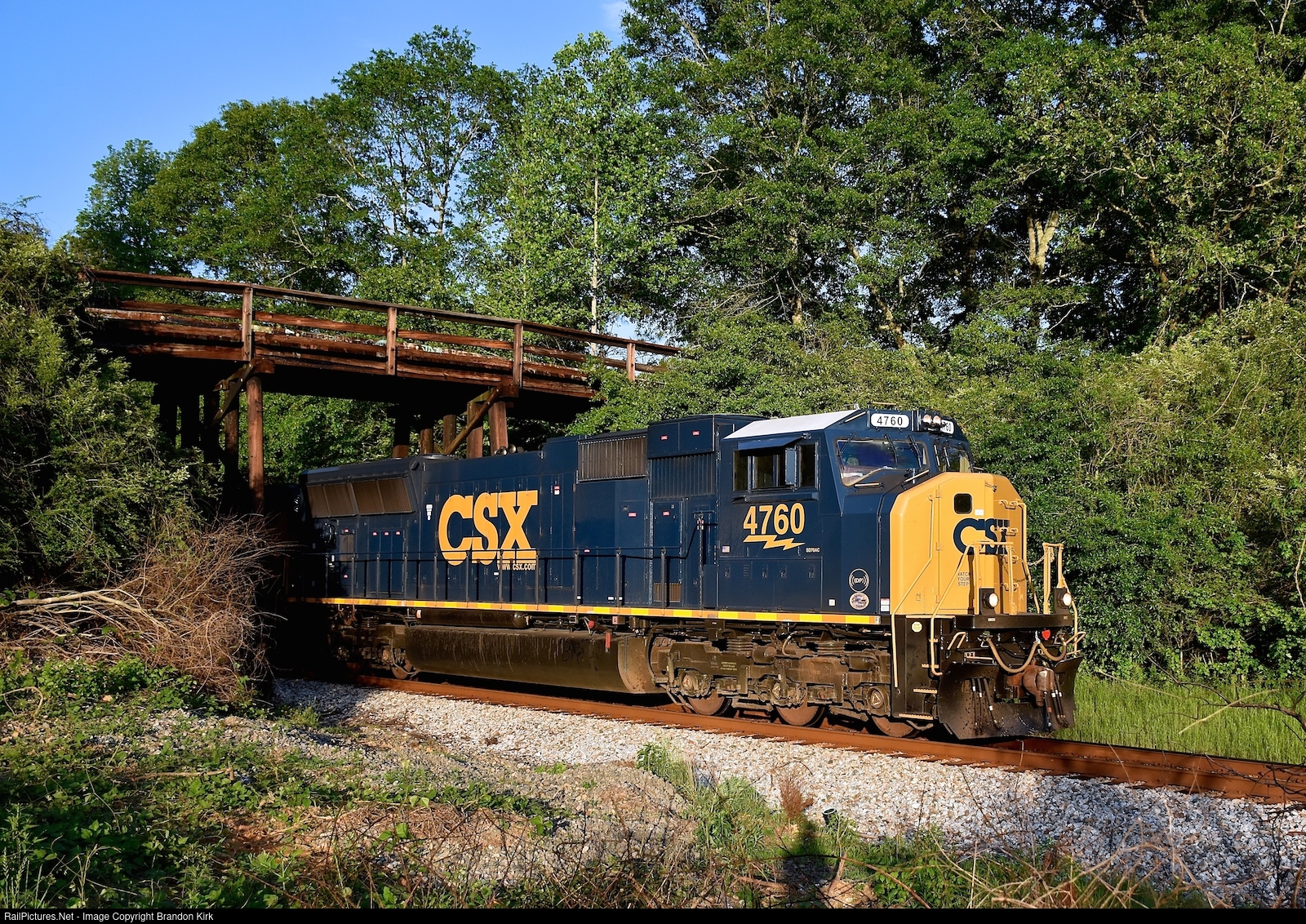 A massive rebuilt MAC gains speed after leaving the siding at north Broughton with intermodal containers. It brings with it a total of 109 cars, some empty, and some stacked. CSXT #4760 was originally built in 2003, and now after going through the rebuild program, it is sure to tow freight for many more years.
