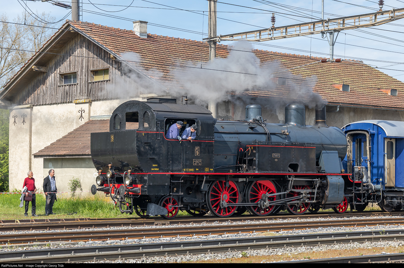 To celebrate 150 years of the Nationalbahn, founded in 1875 and bankrupt a few years later already, there was a large railway event held in Etzwilen this day. 2-6-2 T steamlocomotive Eb 3/5 # 9 of the Dampfbahnverein Zürcher Oberland (DVZO) came from Bauma via Winterthur to Etzwilen and pulled steamtrains to Singen and back.