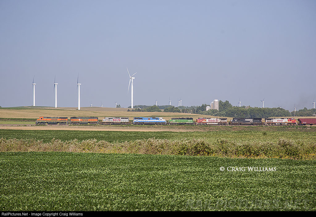 Not much is left of this consist in the current 2023 railroading. Back in 2007, this Northtown to KC freight had a dog's breakfast lashup as they made their way south on the Marshall Sub. The train is seen here south of the siding at Ruthven. The rear 4 motors will set out at Garrison for points around Sioux Falls.
