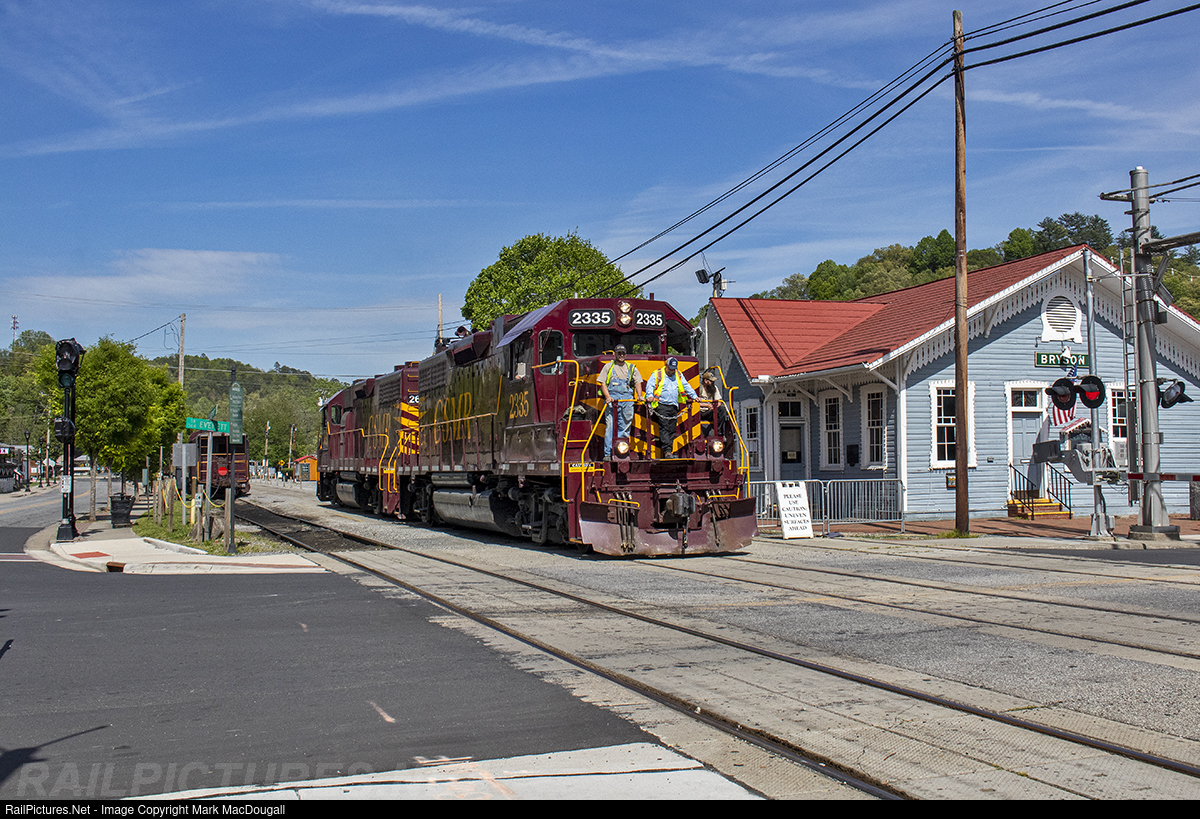 RailPictures.Net Photo: GSMR 2335 Great Smoky Mountains Railroad EMD GP38-2 at Bryson City, North Carolina by Mark MacDougall