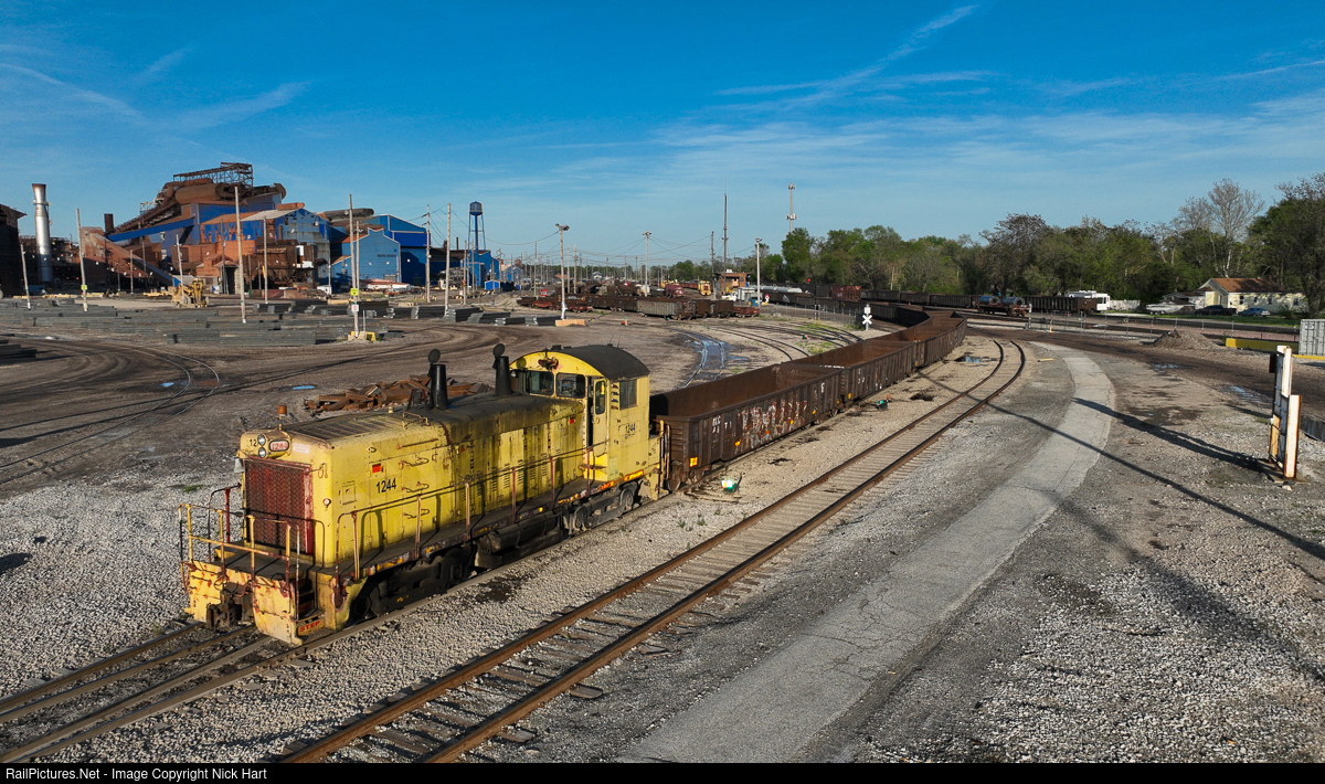 | U.S. Steel's Granite City Works was indefinitely idled in late 2023, forcing the lay offs of nearly 300 employees. During my recent trip to the area, there were multiple movements being made into and out of the plant. Perhaps this is a positive sign for the future. 68 year old USSX SW1200 #1244 has certainly seen better days, but she was pulling and shoving like a champ with empties. |