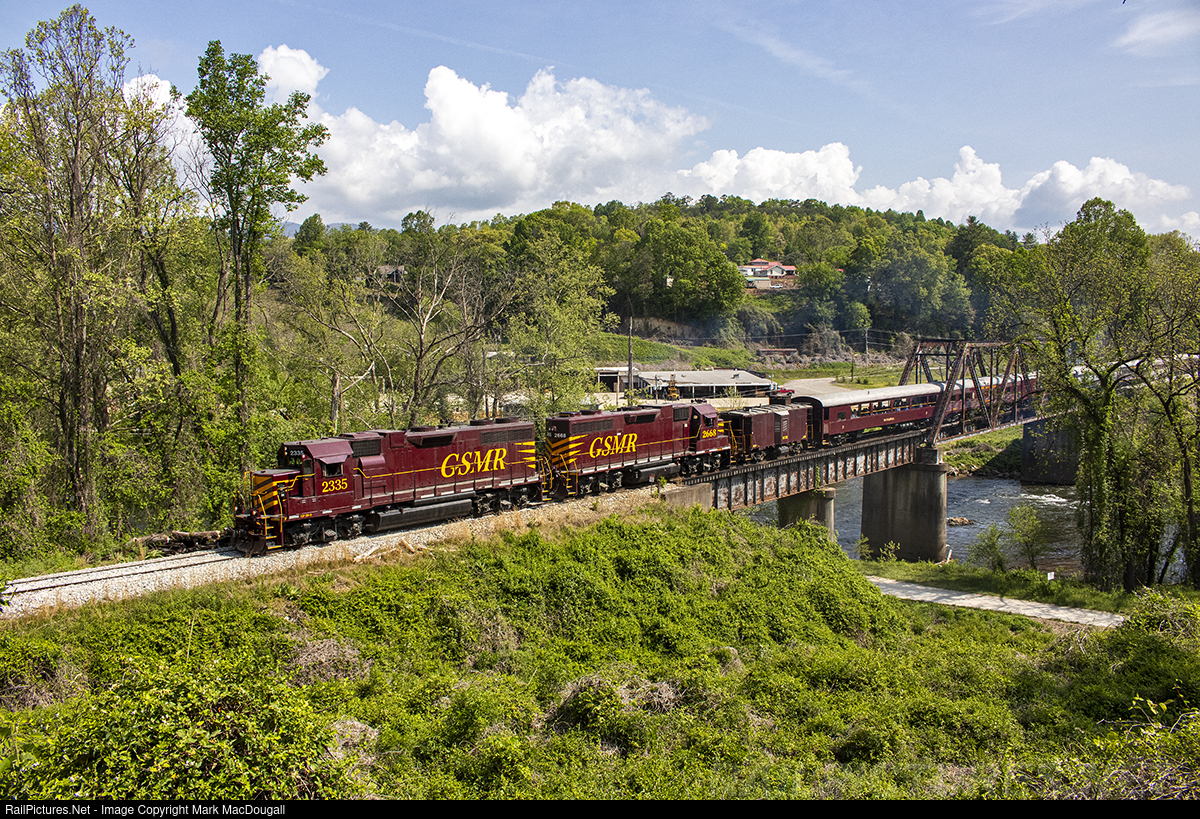RailPictures.Net Photo: GSMR 2335 Great Smoky Mountains Railroad EMD GP38-2 at Bryson City, North Carolina by Mark MacDougall