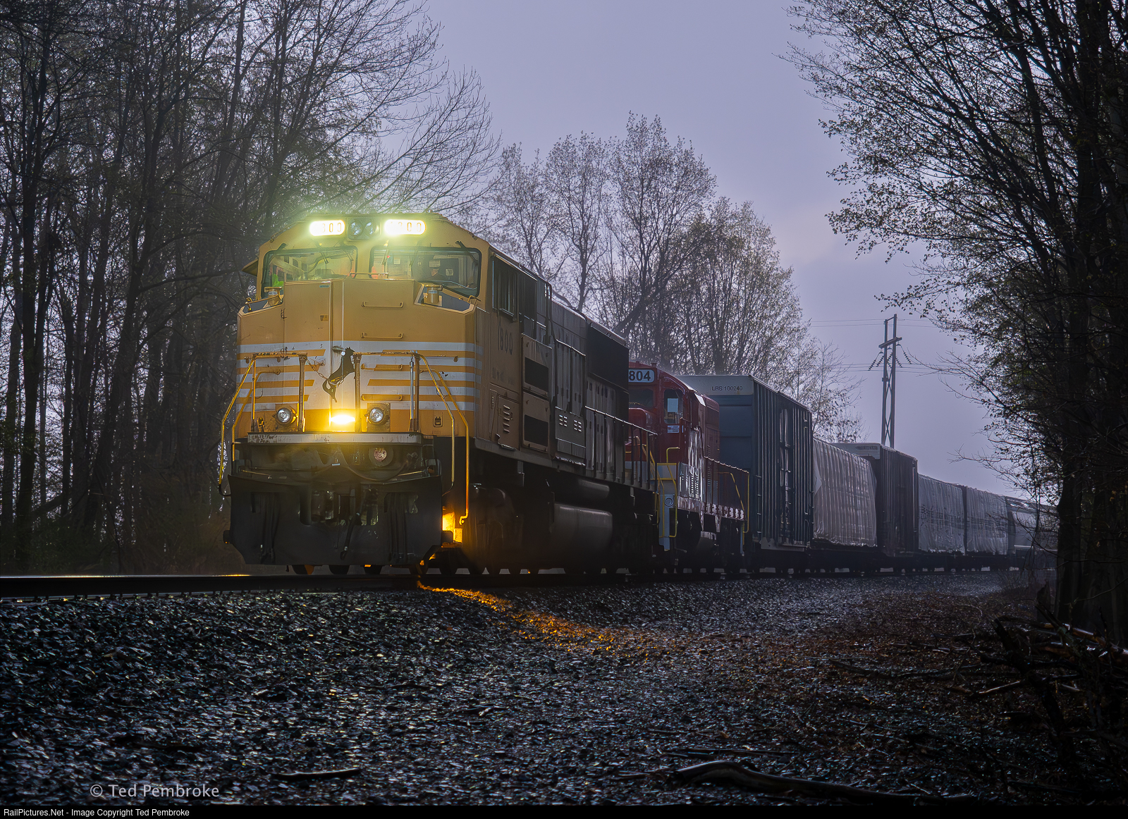 | NS 1800 leads EB with a RJ Corman GP16 in tow.