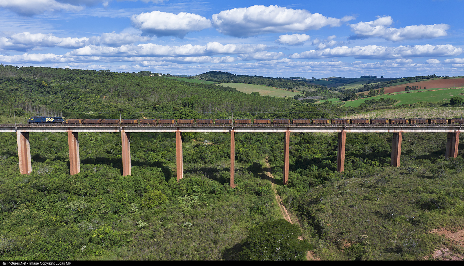 Southbound ore train crossing viaduct #71 at near Itutinga-MG.