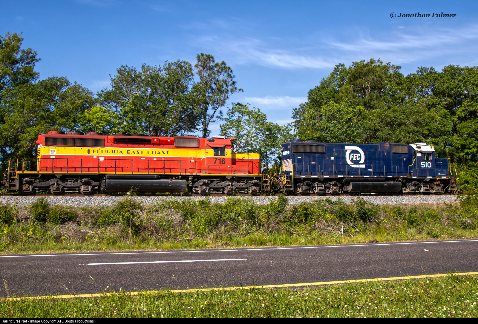 | "The Final Run" Before leaving Jacksonville to head home to middle GA, I caught wind that FEC 204 went through Cocoa earlier in the morning with Hurricane GP38-2 510 leading snoot nose SD40-2 716 on the Ft. Pierce-Bowden Yard mixed freight/intermodal, seen here arriving into Jacksonville just after 10:30 AM Friday morning. This would end up concluding my short 4 day visit to the FEC. |